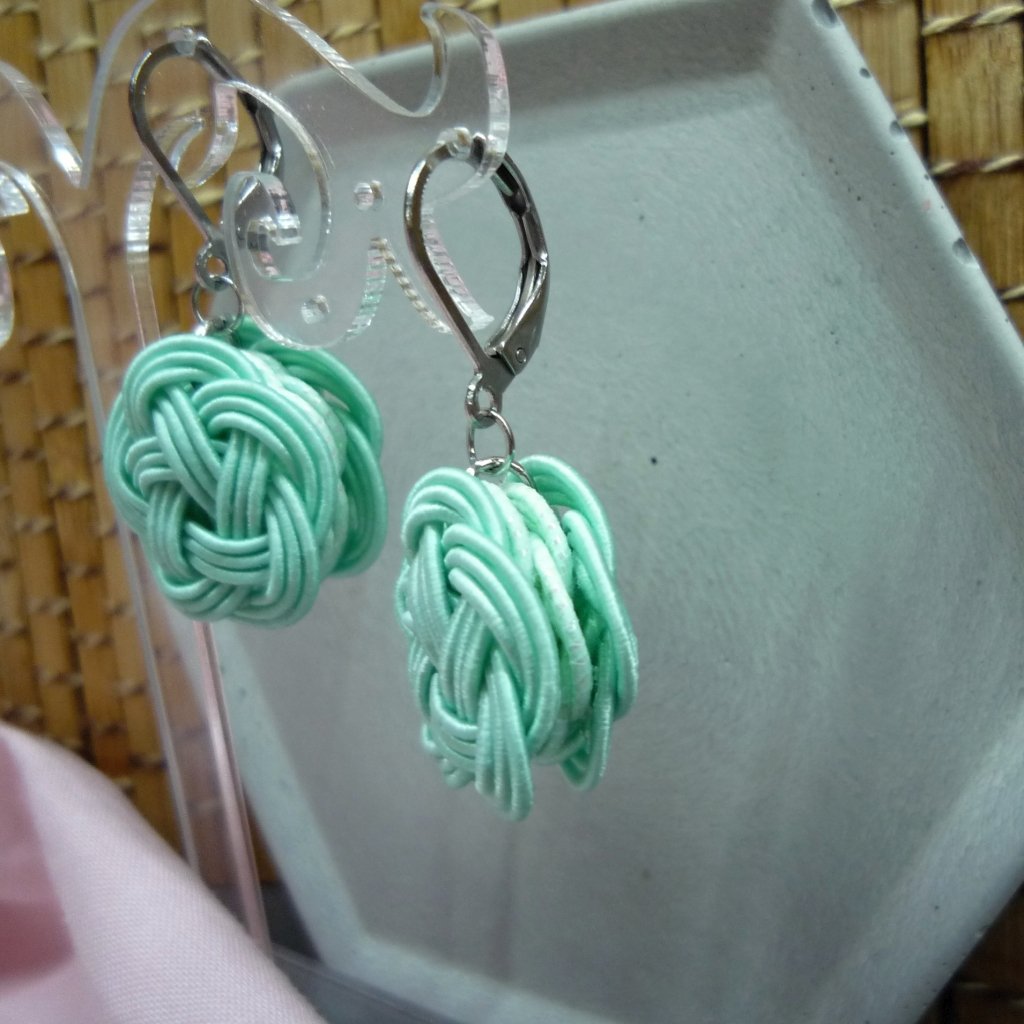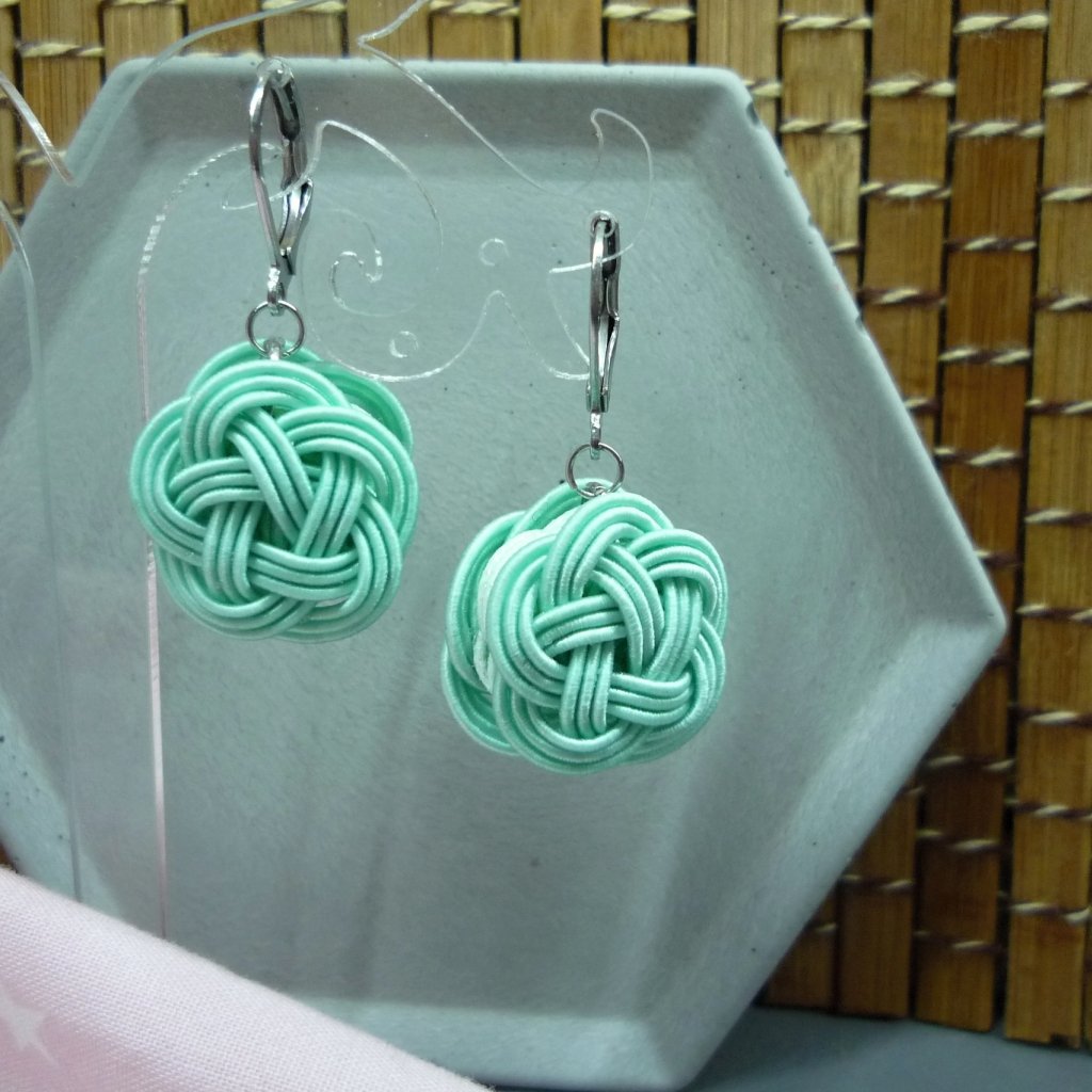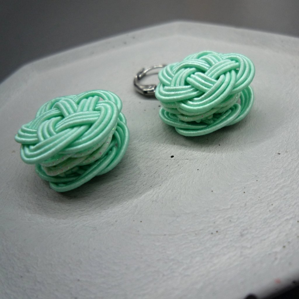 Mizuhiki náušnice MAKRONKA #5 mátová