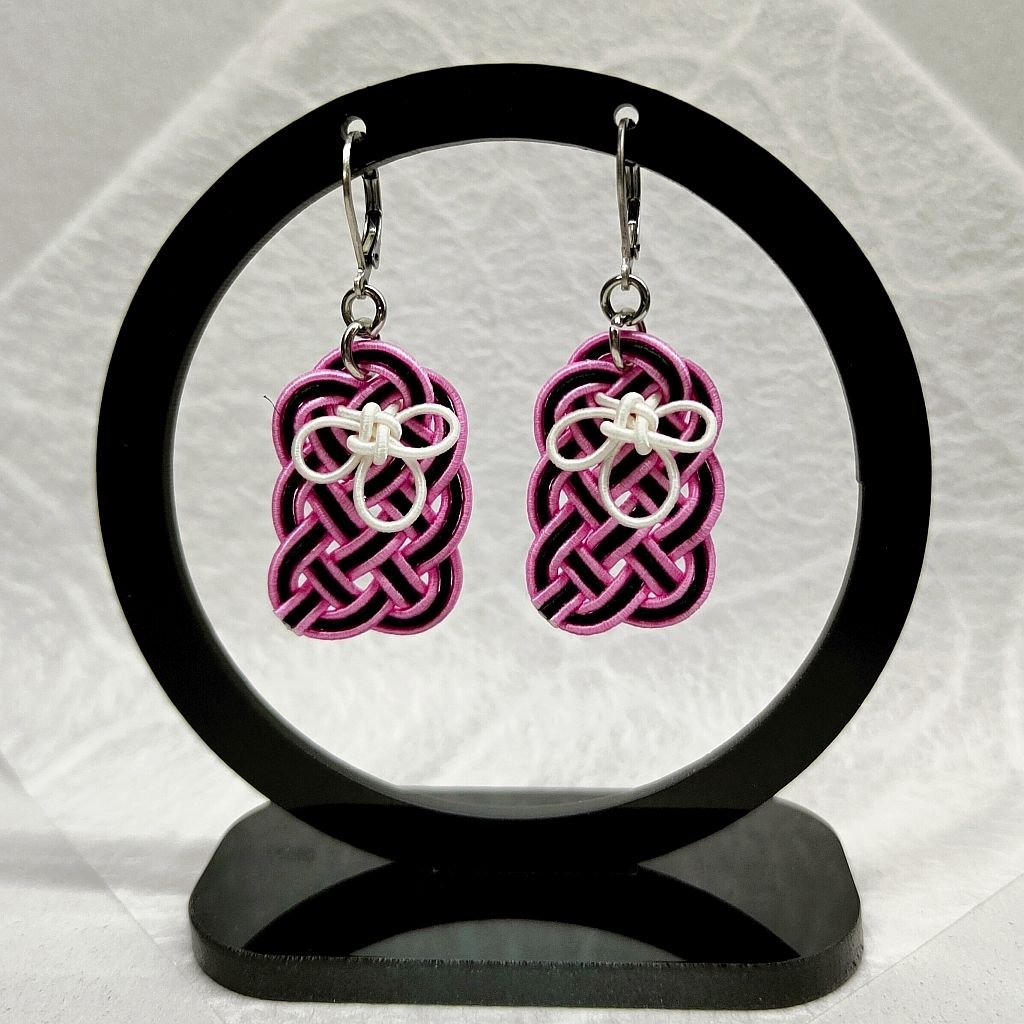 Jedná se o tradiční japonskou techniku mizuhiki, což je vázání uzlů ze speciálních papírových šlahounů. Díky použitému materiálu jsou náušnice lehké a odolné i vůči vodě. Nevadí tak, když si náušnice zapomenete sundat před koupelí.