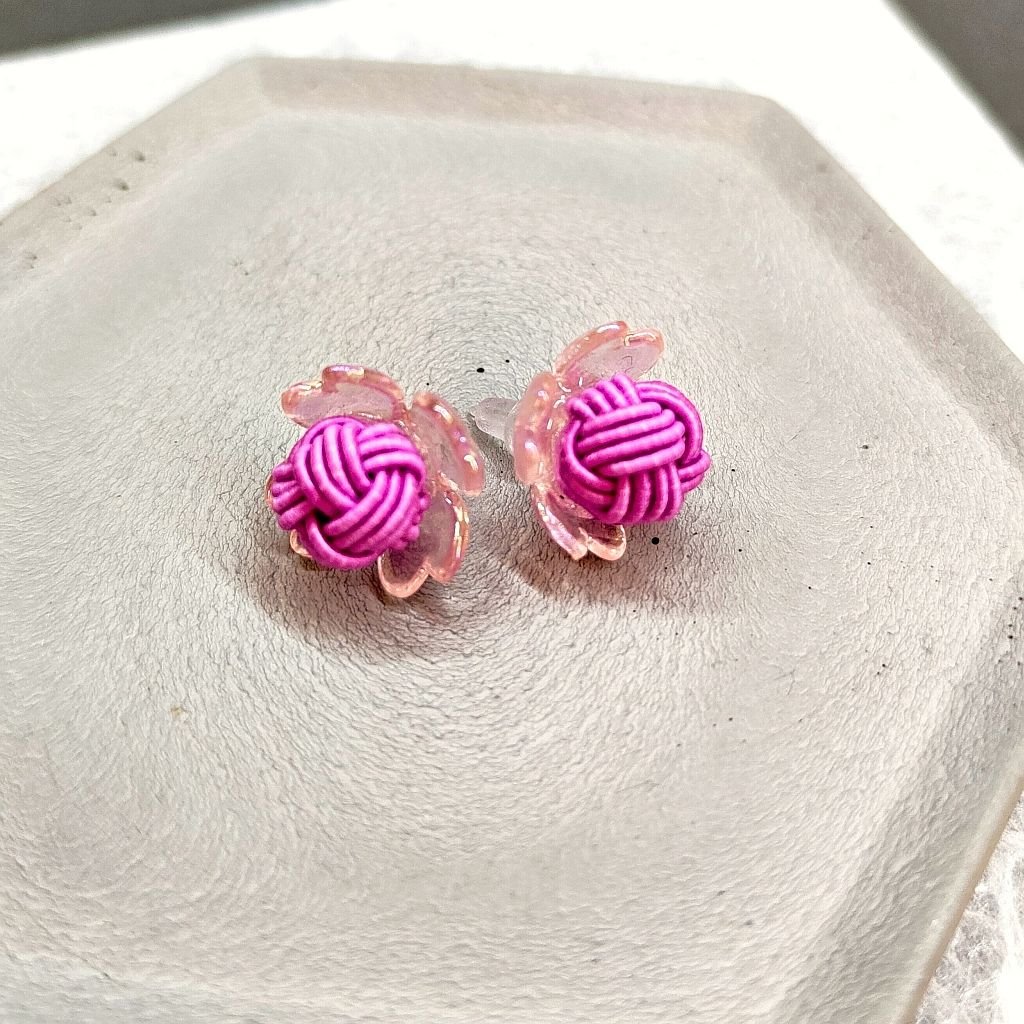 - mizuhiki uzel tama-musubi o průměru cca 1 cm, umístěný v akrylových okvětních lístcích