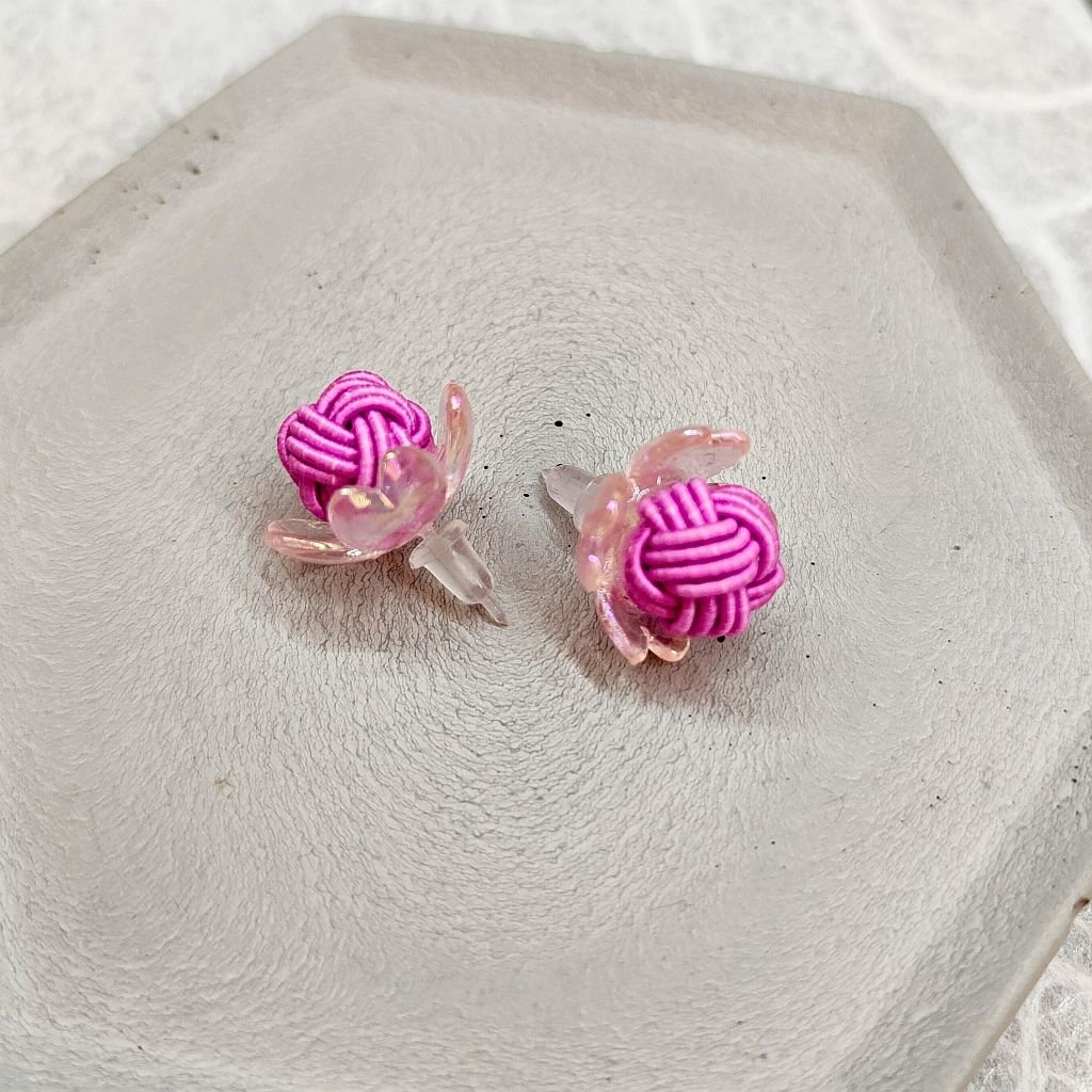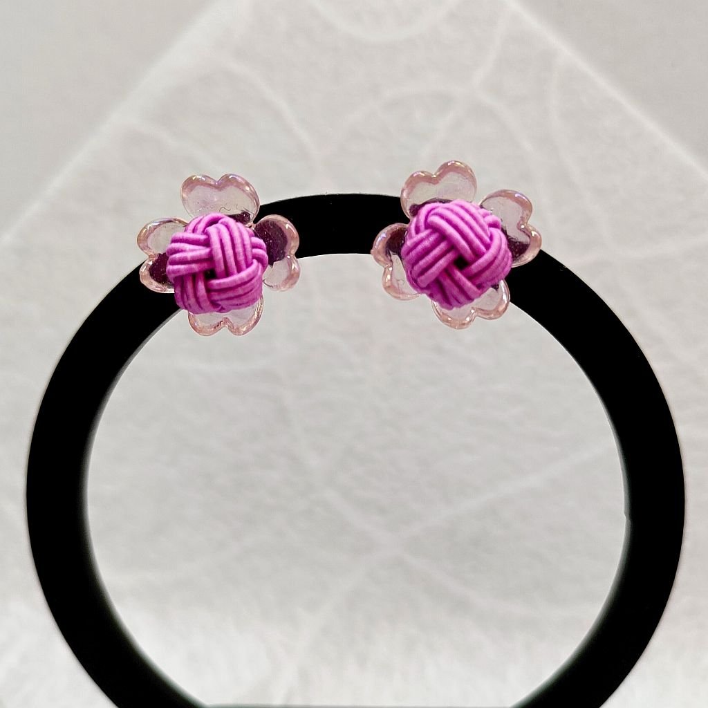 Jedná se o tradiční japonskou techniku mizuhiki, což je vázání uzlů ze speciálních papírových šlahounů. Díky použitému materiálu jsou náušnice lehké a odolné i vůči vodě. Nevadí tak, když si náušnice zapomenete sundat před koupelí.