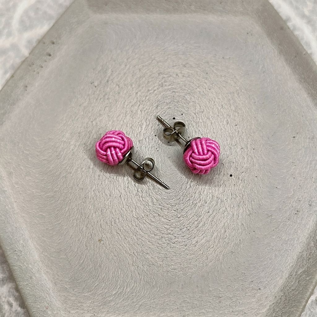 Jedná se o tradiční japonskou techniku mizuhiki, což je vázání uzlů ze speciálních papírových šlahounů. Díky použitému materiálu jsou náušnice lehké a odolné i vůči vodě. Nevadí tak, když si náušnice zapomenete sundat před koupelí.