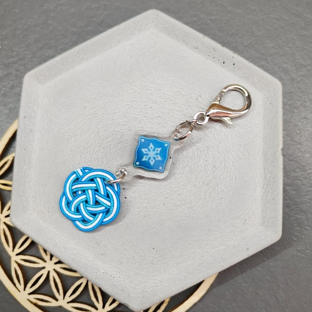 Mizuhiki přívěsek inspirovaný hrou Genshin impact - konkrétně elementem Cryo.