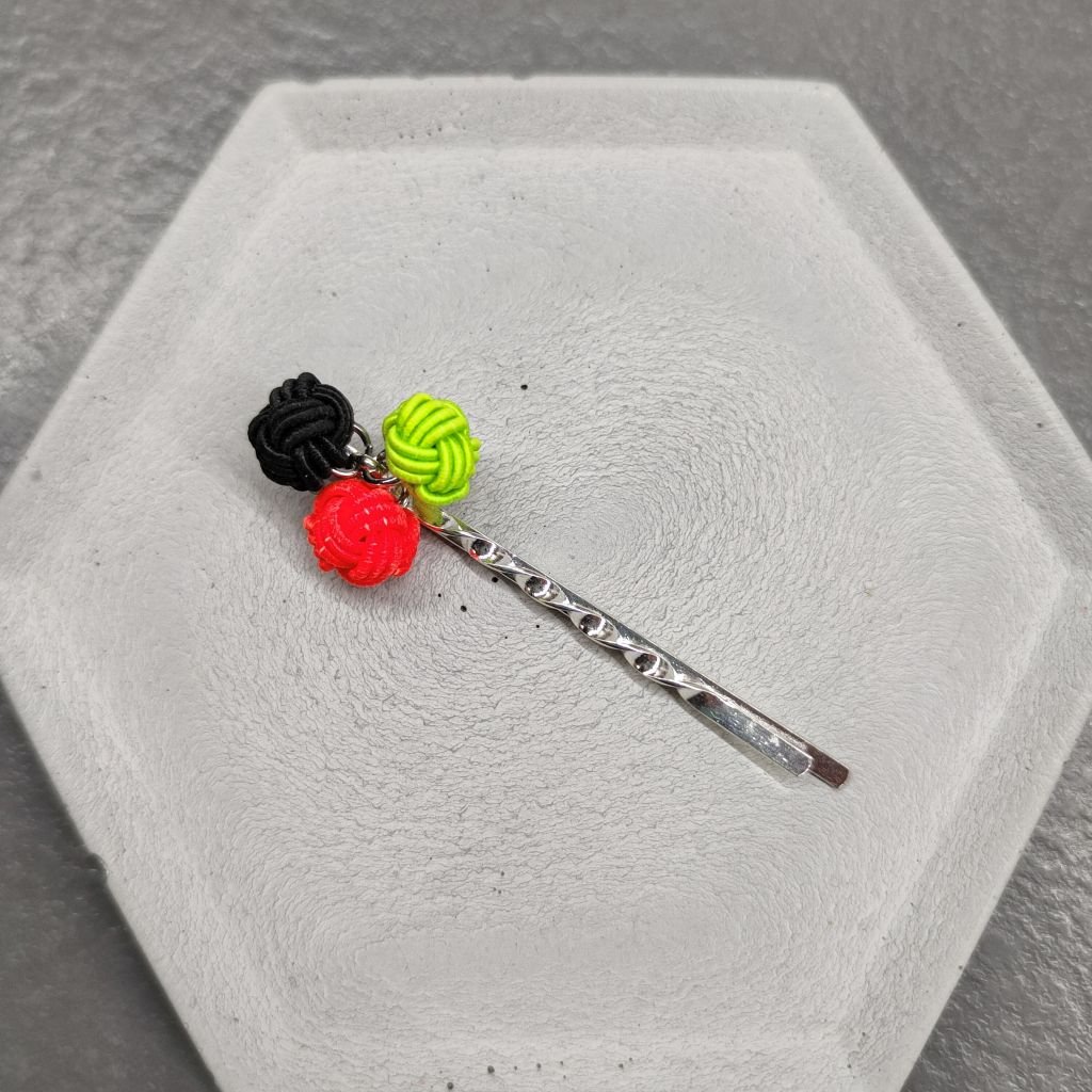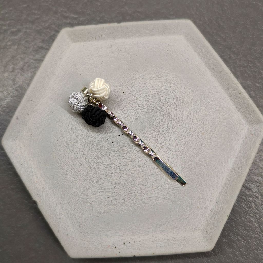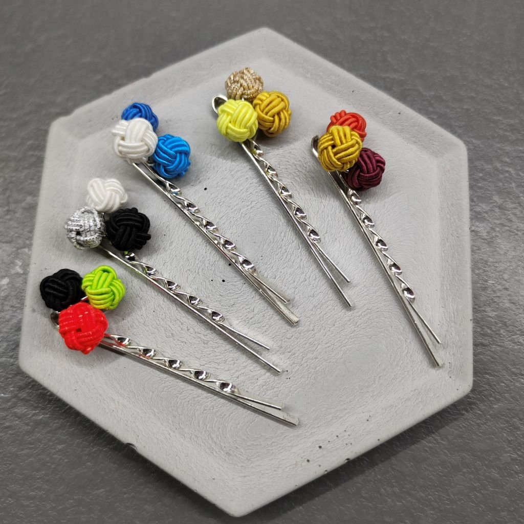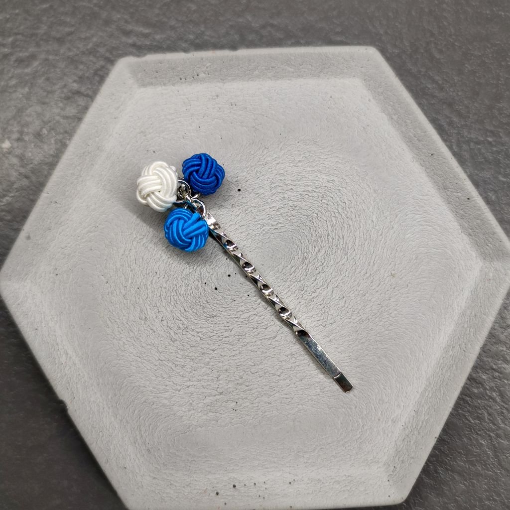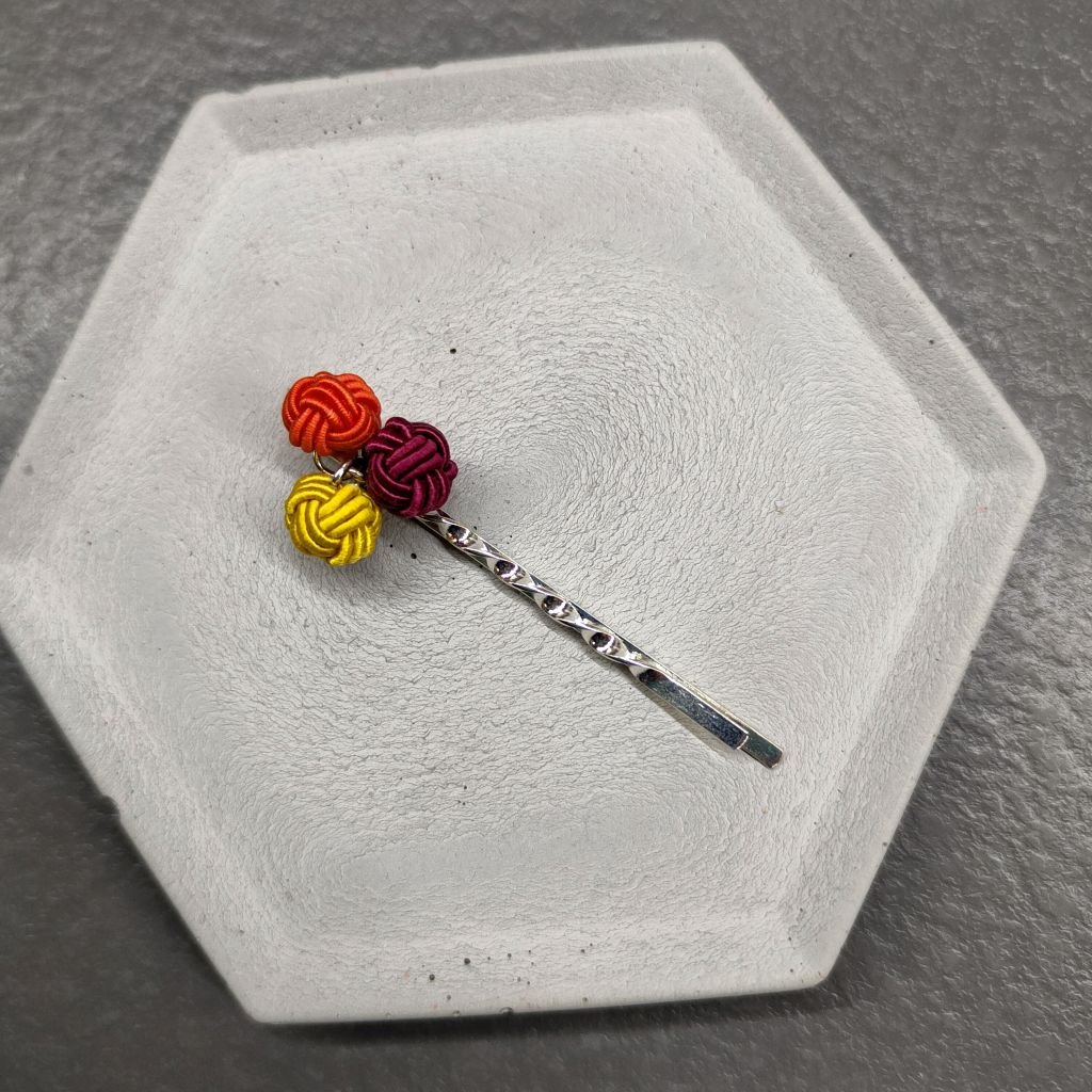 Jedná se o tradiční japonskou techniku mizuhiki, což je vázání uzlů ze speciálních papírových šlahounů. Díky použitému materiálu je pérko lehké, nezatěžuje vlasy a odolné i vůči vodě.
