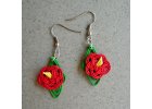 mizuhiki náušnice ROZVERNÁ SRDÍČKA - rubínová